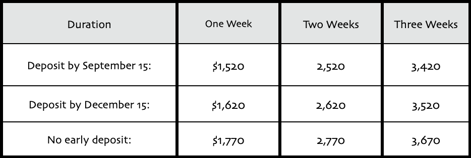**$520 IS THE DEPOSIT ONLY, FOR THE FULL TUITION SEE PRICING TABLE BELOW